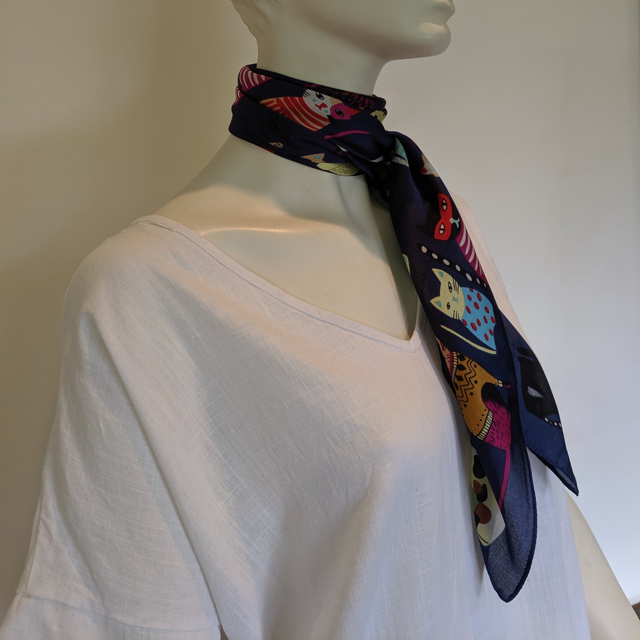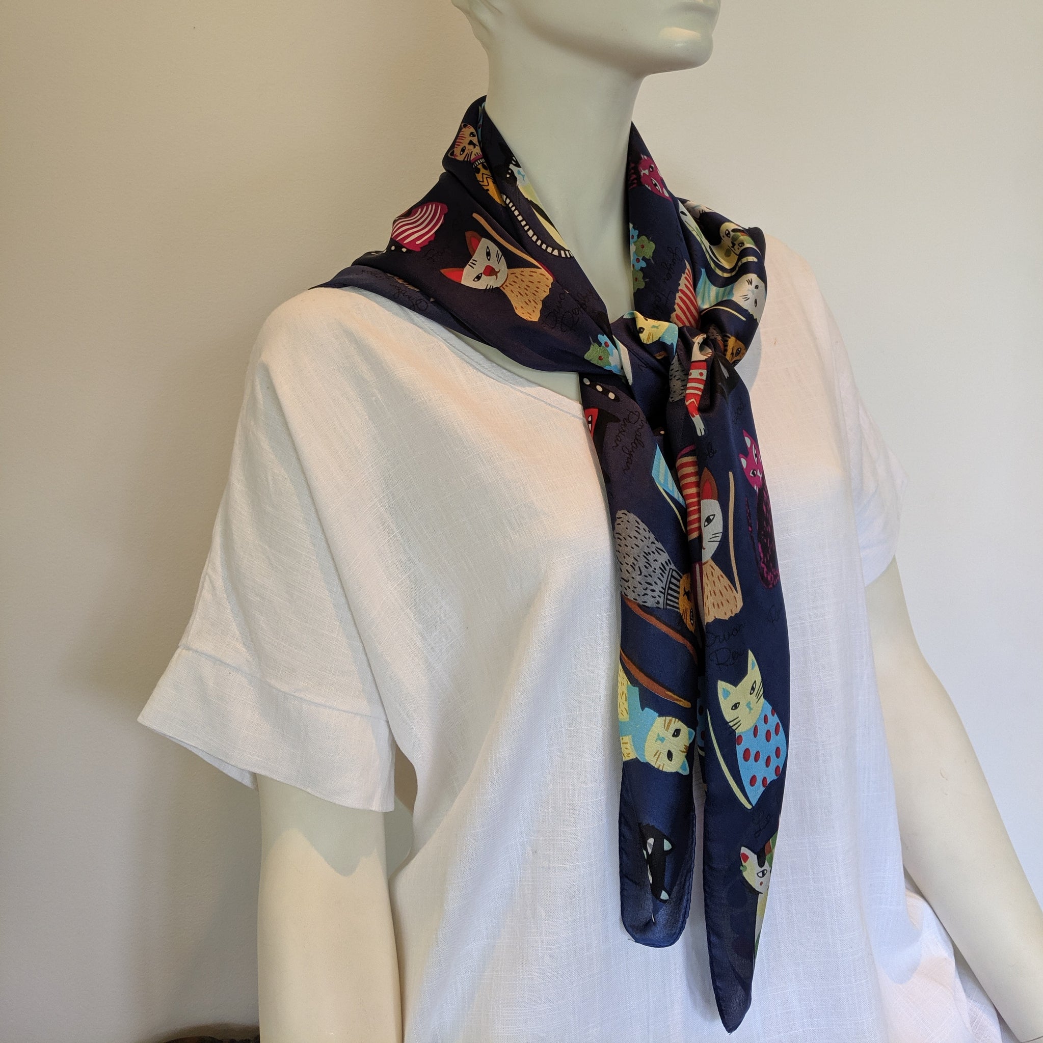 Meow square cat scarf. 90cm x 90cm.